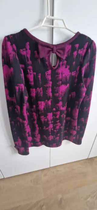 Jersey de Adolfo Dominguez con un diseño abstracto en tonos morados y negros. - Tejido con textura. - Cuello redondo.