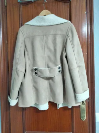 Elegante abrigo o chaqueta de Zara, con un diseño vintage y un toque especial. - Corte moderno con detalles de encaje en los puños. - Doble abotonadura frontal. - Cuello alto.