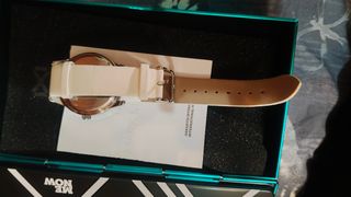 Precioso reloj de pulsera Mark Maddox para mujer. Es de color blanco y azul, con una correa de piel blanca. Luce impecable. - Elegante diseño. - Correa de piel blanca. - Caja metálica.