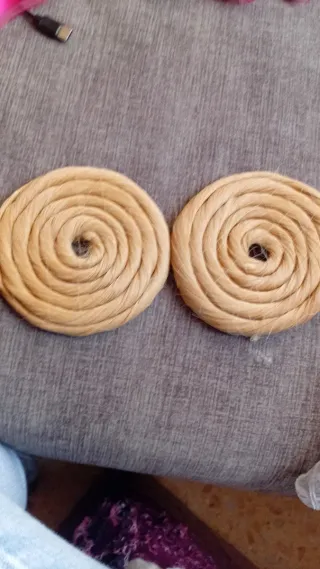 Set de rodetes para fallera, elaborados con pelo natural. - Color beige y dorado. Son de adulta la foto con el otro para que veáis la comparación Los Rodetes están en la zona de Patraix