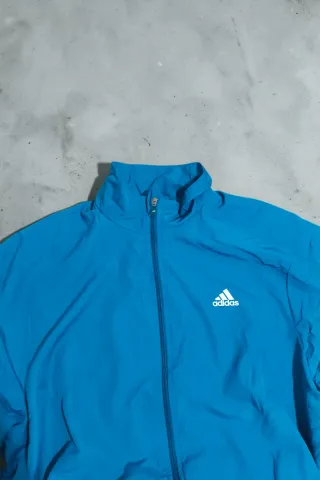 ⚡ Cortavientos o chaqueta deportiva ligera Adidas, ideal para running o ciclismo por su diseño. 🏷️ Talla: M (La talla estimada por las medidas de hombro coincide con la talla americana que marca su etiqueta). 📏 Medidas: 69 cm de largo x 50 cm de hombro a hombro. 🎨 Color: Azul vibrante con detalles y logos en blanco. ✅ Estado: Muy bueno, no se aprecian desgastes ni manchas. 🔎 Detalles: Cierre frontal de cremallera, logo clásico de Adidas en el pecho, corte asimétrico (más corto en la espalda, típico de prendas de running/bici) y detalle de las tres franjas míticas en la parte baja trasera. #adidas #adidaswindbreaker