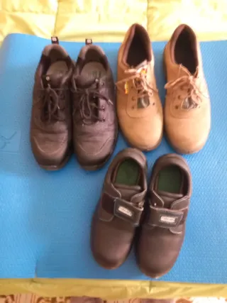 Se venden botas de seguridad en color gris y marrón. Son cómodas y resistentes. - Cierre de velcro. - Puntera reforzada. - Suela antideslizante. Las botas Panter talla 41 y bicap color marrón talla 43 sd vende por 12 euros. Las botas robusta talla 36 se vende por 5 euros.