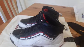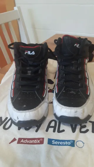 Zapatillas altas de la marca Fila en color negro y blanco. Perfectas para el día a día. - Cierre con cordones. - Detalle de líneas rojas y blancas en los laterales. - Logo de Fila en la lengüeta.