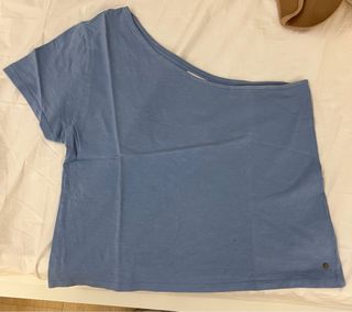 Camiseta de manga corta con diseño asimétrico. - Corte moderno y favorecedor. - Tejido suave y cómodo. - Detalle de pequeño logo en el bajo.