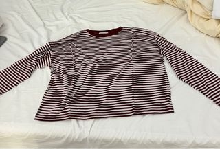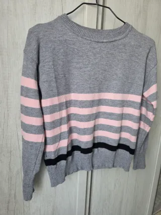 Jersey de punto con diseño de rayas horizontales. Es una prenda cómoda y versátil. - Diseño a rayas. - Cuello redondo. - Manga larga.