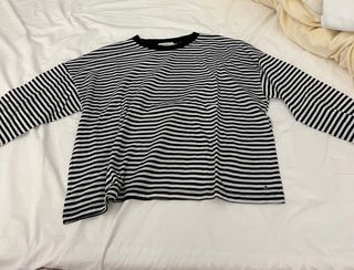 Camiseta de manga larga con un diseño de rayas horizontales en blanco y negro. Su corte es holgado y cómodo. - Diseño de rayas. - Cuello redondo.