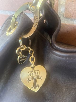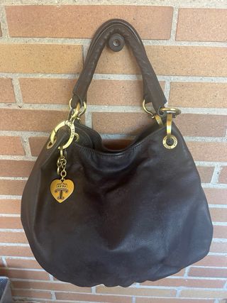 Bolso de piel en color marrón. - Cierre con cremallera. - Asa de mano. - Incluye charm con logo. - Detalle de anillas doradas.