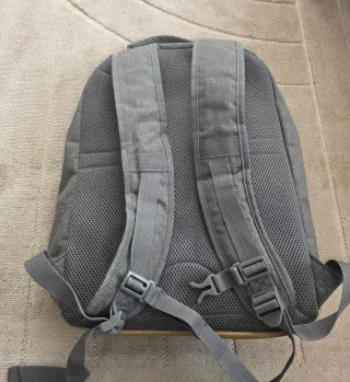 Mochila con un diseño moderno y práctico. - Compartimento principal espacioso. - Bolsillo frontal con cremallera. - Correas ajustables para los hombros. - Detalle de base en color beige. Sin usar