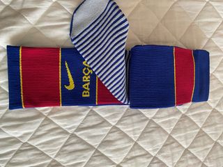 Medias deportivas con el diseño del FC Barcelona. - Diseño a rayas en la parte superior. - Logo de Nike y Barça en la parte frontal.