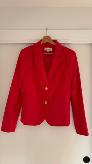 Elegante saco Calvin Klein (original) para mujer, completamente NUEVO. - Color rojo/salmón vibrante. - Detalle de botones dorados. - Diseño clásico con solapa. - Hombreras - Talla 14 (XL) Perfecto estado