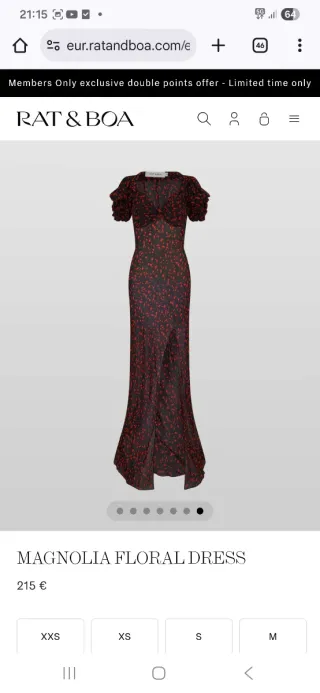 Vestido largo de la marca Rat & Boa, modelo Magnolia Floral. Un diseño elegante y llamativo. - Estampado floral en tonos rojos sobre fondo negro. - Corte largo con abertura lateral. - Mangas abullonadas cortas. Envios solo Canarias