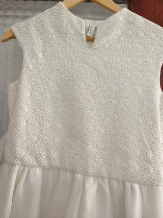 Vestido de comunión elegante y delicado. Talla 130 - Diseño sin mangas. - Cierre de botones nacarados en la espalda. - Falda vaporosa con varias capas de tejido. - Lazos laterales para ajustar.