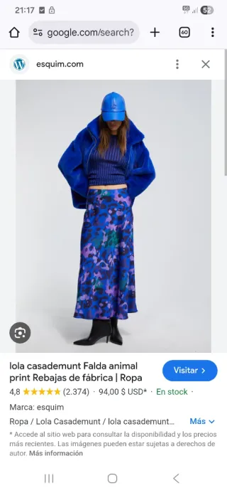 Falda midi con un llamativo estampado animal print en tonos azules y morados. El diseño es moderno y vibrante, ideal para añadir un toque de color a tu armario. - Estampado animal print. - Diseño midi. - Tejido fluido. ENVIOS SOLO CANARIAS