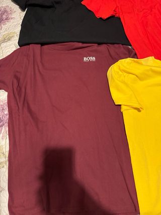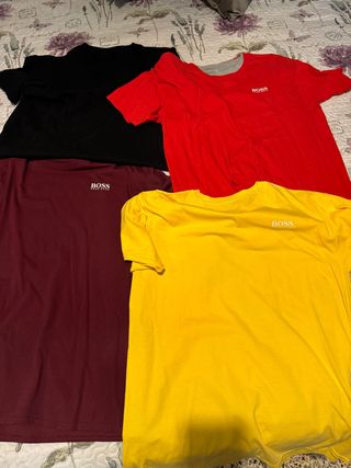Conjunto de cuatro camisetas de manga corta de la marca Hugo Boss. - Camiseta negra - Camiseta roja - Camiseta granate - Camiseta amarilla son 5 a 25 sueltas juntas 100