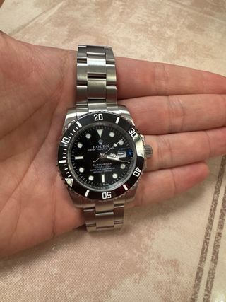 Reloj automático submarino. - Esfera negra. - Bisel giratorio. - Correa de acero inoxidable.