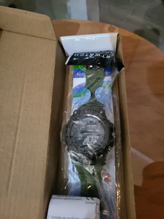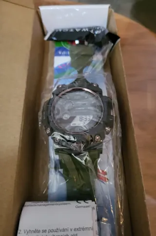 Reloj deportivo con un diseño moderno y funcional. - Correa de color verde. - Caja de reloj en color negro. - Esfera con detalles en contraste.