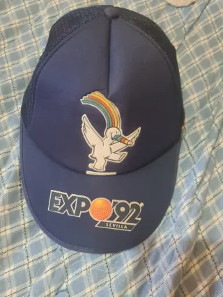 Gorra de la Exposición Universal de Sevilla de 1992. Un recuerdo icónico de este evento.origanal - Diseño de la Expo 92. - Estilo trucker con malla trasera.