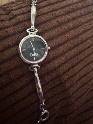 Elegante reloj de pulsera con un diseño sofisticado. - Esfera redonda de color negro. - Brazalete metálico en tono plateado. - Cierre de tipo T-bar.