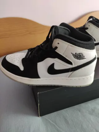 Zapatillas Air Jordan 1 Mid SE GS en blanco y negro. Un clásico renovado para tu colección.. Se han usado en ocasiones contadas están prácticamente nuevas. Costaron 190 euros. Talla 38,5. Llevan su caja. Son unisex. Se puede ver sin ningún compromiso. Más cosas en mi perfil - Diseño de caña media. - Detalles en contraste.