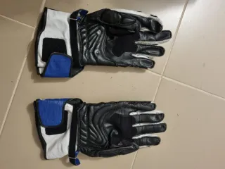 Guantes de moto Alpinestars en talla L. Diseñados para ofrecer protección y comodidad. - Combinación de colores azul, blanco y negro. - Protecciones en nudillos y dedos. - Cierre ajustable en muñeca.