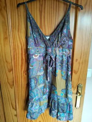 Vestido con un estampado vibrante y colorido, perfecto para lucir en cualquier ocasión. - Diseño con tirantes. - Estampado paisley. - Tejido ligero y fluido. - Seda de poliéster