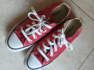 Zapatillas deportivas Converse para niños en talla 36. - Color rojo vibrante. - Cierre con cordones blancos. - Diseño clásico de lona.