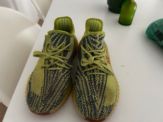 Zapatillas Adidas Yeezy Boost 350 V2 en llamativos tonos amarillos y verdes. El diseño icónico de estas zapatillas las hace destacar. - Parte superior de Primeknit. - Detalle de raya lateral en rojo. - Suela Boost para máxima comodidad.