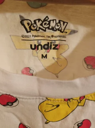 Camiseta de mujer con estampado de Pokémon. - Diseño multicolor sobre fondo blanco. - Personajes de Pokémon icónicos. - Cuello redondo y manga corta.