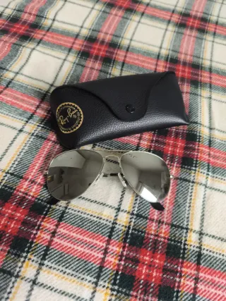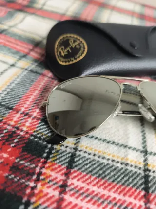 Gafas de sol Ray-Ban estilo aviador con lentes plateadas. Precio negociable. - Montura metálica. - Lentes con acabado espejo.