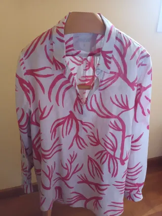 Camisa de manga larga con un llamativo estampado. Contornonpecho 108-113cm - Diseño con estampado de coral en contraste. - Cuello camisero clásico. - Cierre de botones oculto.