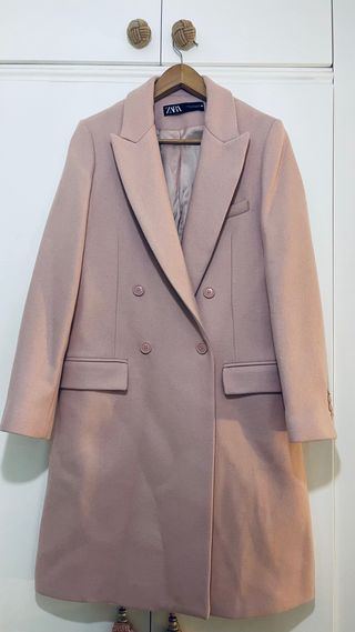 abrigo 3/4 de Zara en tono rosa nude. - Diseño de doble botonadura. - Solapas clásicas. - Bolsillos frontales. - Forro interior. - calidad manteco