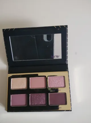 Paleta de sombras de ojos Tarte con tonos rosados y morados. - Incluye seis sombras. - Acabado brillante y mate.