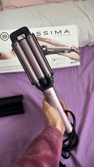 Plancha para crear ondas luminosas, con placas intercambiables para ondas anchas o estrechas. - Modelo My-Pro. - Placas intercambiables para diferentes tipos de ondas. - Incluye accesorio para ondas estrechas.
