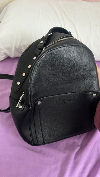 Mochila de cuero de tamaño pequeño. - Diseño moderno y versátil. - Cierre de cremallera. - Asa superior. - Correas ajustables.