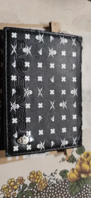 Billetera con un diseño llamativo y moderno. - Estampado de calaveras y cruces. - Logo de Quiksilver en relieve. - Detalle metálico en la parte inferior.