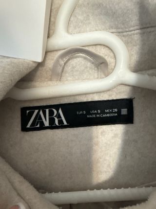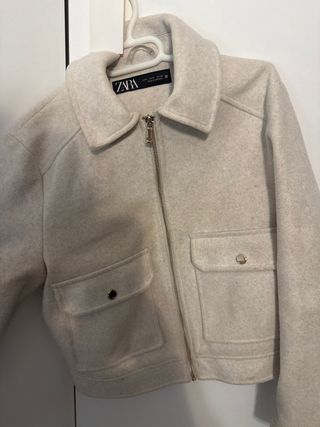 Chaqueta corta de Zara en color beige. Diseño moderno con cuello - Cierre de cremallera frontal. - Dos bolsillos de solapa con botón en la parte delantera. - Puños y bajo de la chaqueta con acabado. - Tejido de tacto suave.