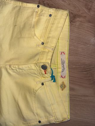 Pantalones vaqueros de color amarillo. - Diseño de cinco bolsillos. - Cierre de botón y cremallera. - Trabillas para cinturón.
