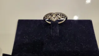 Anillo con diseño de tiara, adornado con circonitas. Diseño fino y elegante tanto para usar solo como combinado con otros anillos (como en la foto). - Fabricado en plata 925. Como nuevo, sin usar, solo para la foto.