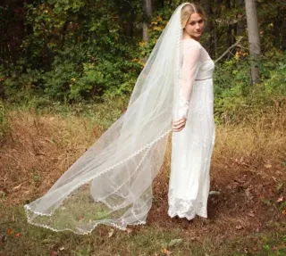 Color blanco, blanco roto y Marfil, con hojas alrededor de todo el velo de tres metros de largo, de tul de una sola capa, con peina. Nuevo a estrenar. Queda precioso puesto. Hago envíos. No devoluciones. Mira en perfil y encontrarás muchas cosas a muy buen precio. Tengo vestidos de novia y de fiesta diferente modelos y tallas. También tengo velos, cancán, bastidores para alianzas, ramos, pendientes, tocados, tiaras liga, cinturones de novias, capas de fiesta y boda, peinas....entra en mi perfil y encontrarás muchos productos todo nuevo a estrenar. Hago envíos.