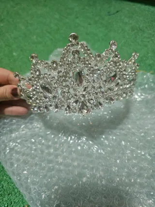 Elegante tiara adornada con brillantes, perfecta para novias o eventos especiales. - Diseño plateado. - Múltiples hileras de brillantes.