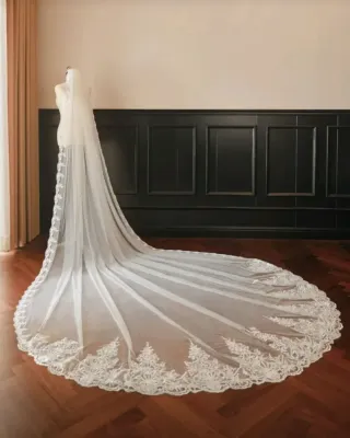 Espectacular velo mantilla, lleno de encaje en la cola y alrededor. Con un espectacular acabado. Blanco roto. Super original para darle un toque completamente diferente a tu vestido. A estrenar. Mira en mi perfil y encontrarás muchas ofertas y todo para novias. Cancán, velos, ligas, vestidos de novia, vestidos de invitadas y fiesta Pendientes, tiaras, tocados, peinas, bastidores, capas de fiesta en diferentes colores, figuras de novios, ramos de novia, cinturones... gran calidad a precios inmejorables. todo a estrenar, entra en mi perfil.