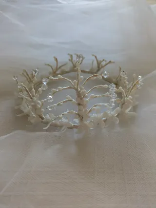Preciosa tiara artesanal, perfecta para complementar un peinado de novia o de fiesta. Diseñada con delicadas flores y detalles de cristal que aportan un toque de brillo. - Diseño floral - Adornada con pequeñas cuentas y cristales. Ideal para Cosplay.