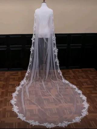 Color blanco roto de tul de una sola capa, sedoso, con peina y encaje con lentejuelas en la cola, queda elegante y muy vistoso Nuevo a estrenar. Queda precioso puesto. De 4 metros de largo. Hago envíos. Mira en perfil y encontrarás muchas cosas a muy buen precio. Velos, vestidos de novia, de invitadas, cancán, tocados, tiaras, bastidores para alianzas de boda, cojines,pendientes ,ligas...capas de fiestas y de novia todo a estrenar. Hago envíos. Entra en mi perfil