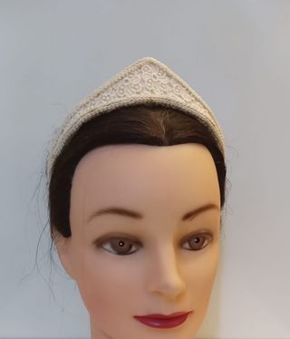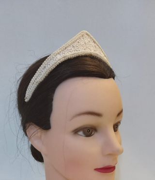Tiara o tocado para novia, comprada pero finalmente no usada. Hecha a mano con laton y perlas. Tiene horquillas a los lados para fijar al pelo.