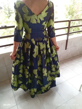 Vestido elegante para eventos especiales. - Diseño con estampado floral. - Corte midi. - Ideal para bodas o celebraciones. Manga semilarga Usado una vez Tocado opcional ( 60 € )