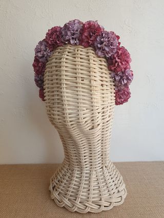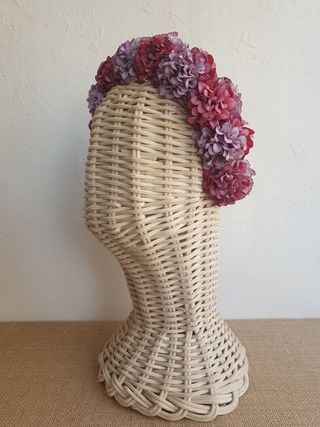 Diadema de de flores tipo hortensias de tela, en colores: lila, malva, morado, violeta, lavanda y rosa fucsia empolvado sobre diadema ancha de tela en color camel, muy cómoda. Nueva sin estrenar. Corona de flores montadas en una diadema como tocado para la ocasión especial que tú elijas, desde una boda, comunión, bautizo, fiesta, feria, flamenca, festival de música, hasta un complemento para tu disfraz de hada, ninfa, hippie, boho chic, bohemio, Frida Kahlo... Mira mi perfil para más complementos hechos a medida y pregúntame si buscas algo personalizado. Envío por wallapop. NO regateo. Sólo a recoger en C/Diego Puerta (Sevilla).