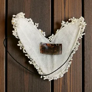 Encantador tocado vintage de flores de naranjo enceradas, elaborado a mano en forma de corazón. Esta pieza única, de aire romántico y evocador, conserva toda la pureza y simbolismo de las antiguas coronas nupciales: las flores de naranjo, emblema de amor eterno y pureza. Realizado con minuciosas flores de cera color marfil sobre una base textil, este tocado combina elegancia y artesanía. En la parte trasera, una peineta y cinta elástica permiten ajustarlo fácilmente al peinado. Ideal para coleccionistas, decoraciones románticas o para una novia que desee lucir una auténtica joya vintage llena de historia y encanto Medidas 17x20 cm