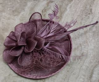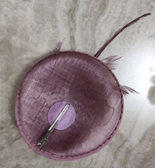 Tocado para eventos. Color morado. Tipo sombrero. Un solo uso. En perfectas condiciones. Como nuevo.