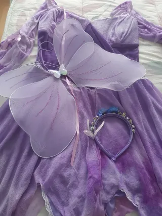 Disfraz de hada para adulto, sin estrenar. Incluye vestido, tocado y alas. - Vestido con detalles desgarrados. - Tocado a juego. - Alas incluidas.