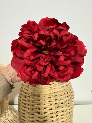 Preciosa peonia de color rojo o blanco para flamenca, de unos 16-17 cms. precio por unidad